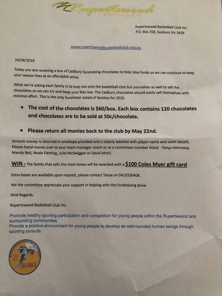 By now everyone should have received their box of Cadbury fundraising chocolates.