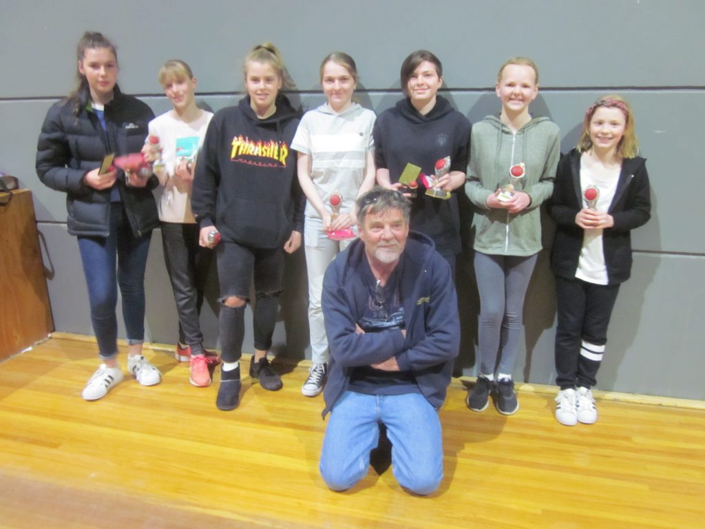 The Mick Stewart Memorial Award trophy went to Tara from U16 girls and presented by President David Tweedly